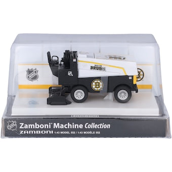 Proudly display your unwavering Boston Bruins fandom with this 1:43 scale die-cast Zamboni. It comes with an arena replica stand and it features authentic NHL and team printed graphics. Keep this Zamboni in your home or office for a year-round showing of Boston Bruins passion.
